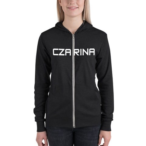 Czarina's can stay warm wearing this ultrasoft ultra comfortable hoodie with the international ballerina design on the back with multiple languages. On the front it says simply "Czarina".