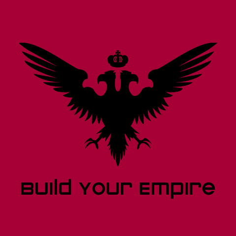 Red BUILD YOUR EMPIRE woven label sewn in left end