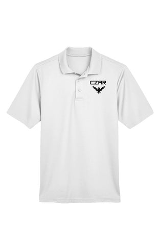White Embroidered Czar Performance Polo:CZAR TEXT+